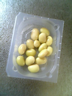 まず、昨晩から水に浸して柔らかくしておいたエダマメ「おつな姫」の種。