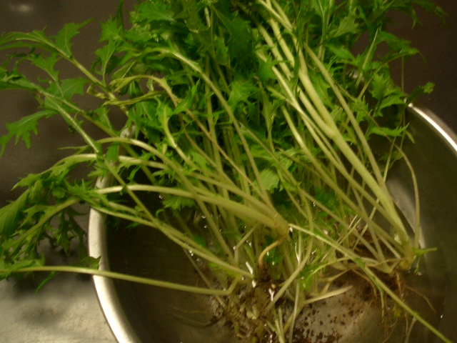 お庭の水菜、収穫中。綿も5つ芽が出て順調に育っているし、